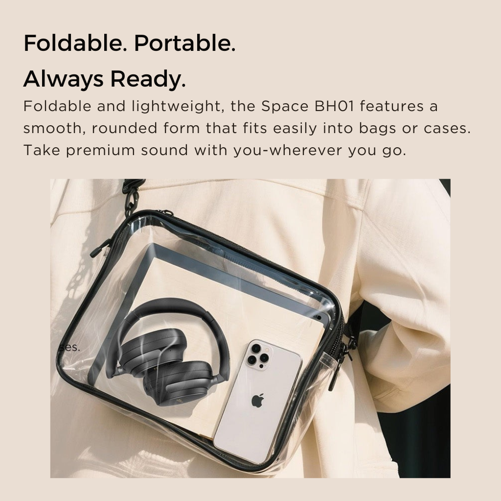 Sulankstomas dizainas. Space BH01 yra ne tik elegantiškos, bet ir itin praktiškos. Ausines galima sulankstyti, todėl jos lengvai telpa į kuprinę ar kelioninį dėklą. Jos visada pasiruošusios keliauti kartu su jumis.