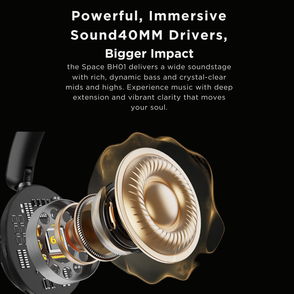 Galingas ir detalus garsas. 40 mm garsiakalbių membranos atkartoja muziką plačia garso scena, su sodriais bosais, skaidriais vidutiniais tonais ir aiškiais aukštaisiais dažniais. Hi-Fi kokybė leidžia mėgautis kiekviena nata – nuo subtilaus vokalo iki dinamiškų instrumentų.