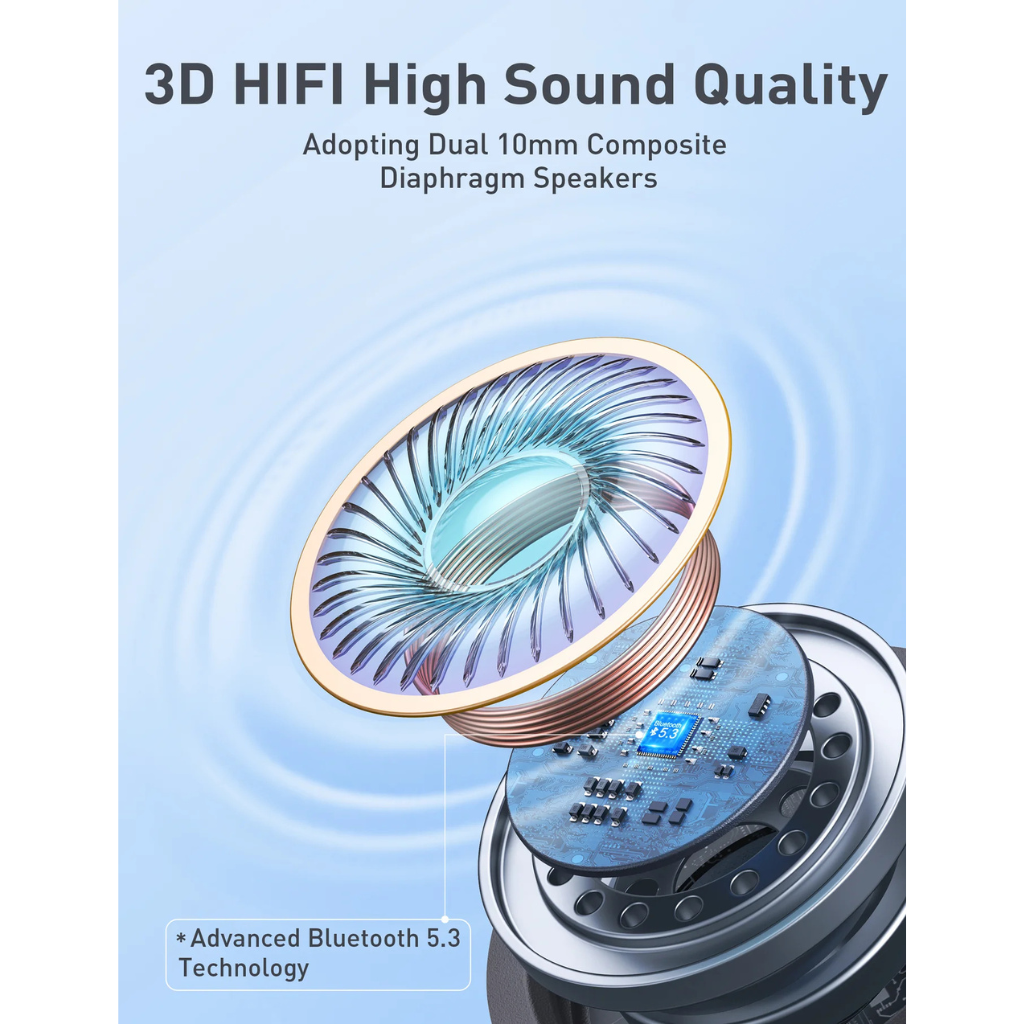 Naujos kartos „Bluetooth 5.3“ technologija užtikrina itin patikimą belaidį ryšį iki 10 metrų atstumu ir mažesnes energijos sąnaudas. Jokių vėlavimų, jokių nutrūkimų – tik vientisa klausymosi patirtis visur, kur esate.
