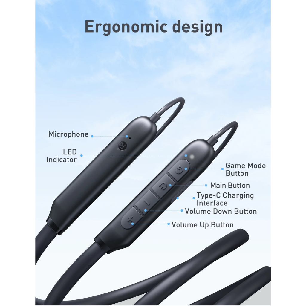 Lengvos ir lankščios ausinės patogiai priglunda prie kaklo ir ausų, o magnetiniai ausinių antgaliai leidžia jas tvarkingai sujungti, kai nenaudojate – jokių mazgų ar susipainiojusių laidų. Puikiai tinka aktyviam gyvenimo būdui, darbui ar kelionėms.
