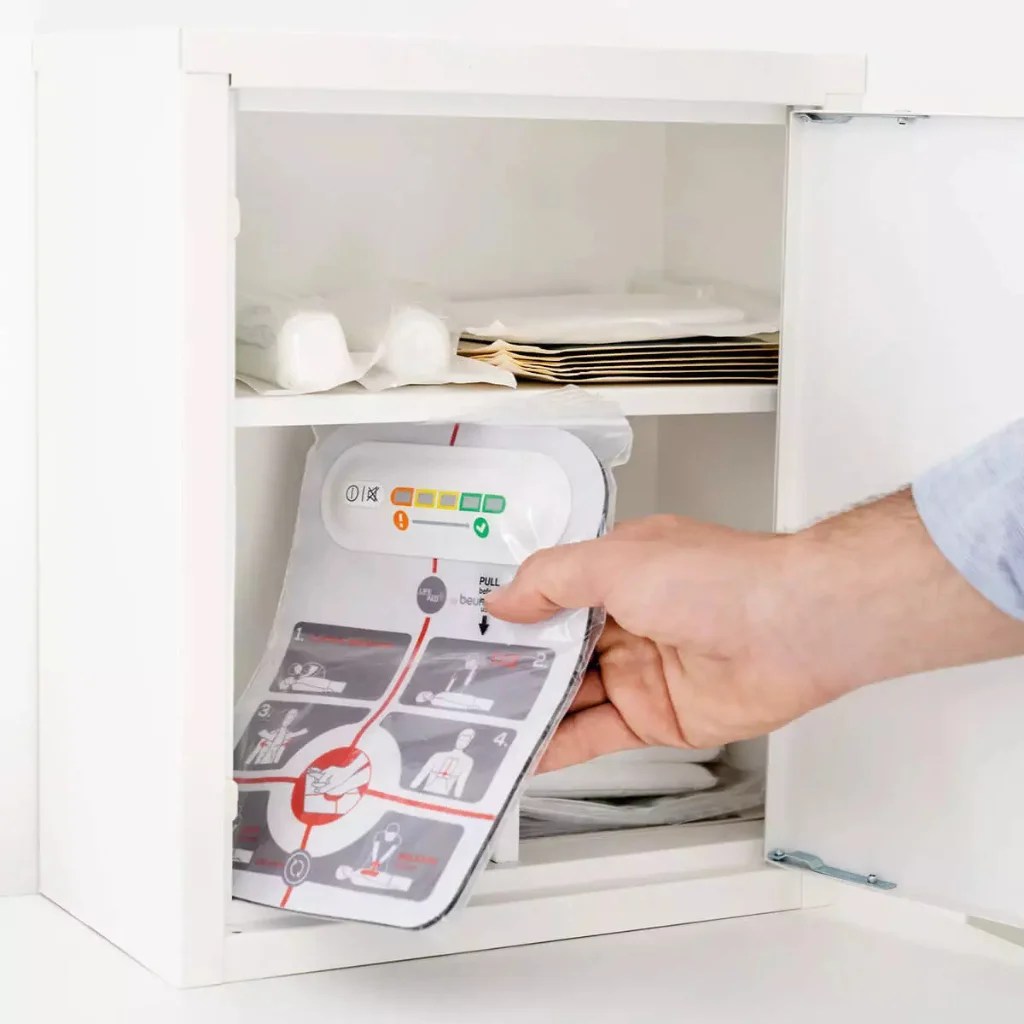 • Naudojimo instrukcijos: Ant paviršiaus pateiktos aiškios žingsninės krūtinės paspaudimų instrukcijos; skirtas naudoti asmenims nuo 12 metų, nereikalingos išankstinės medicininės žinios
