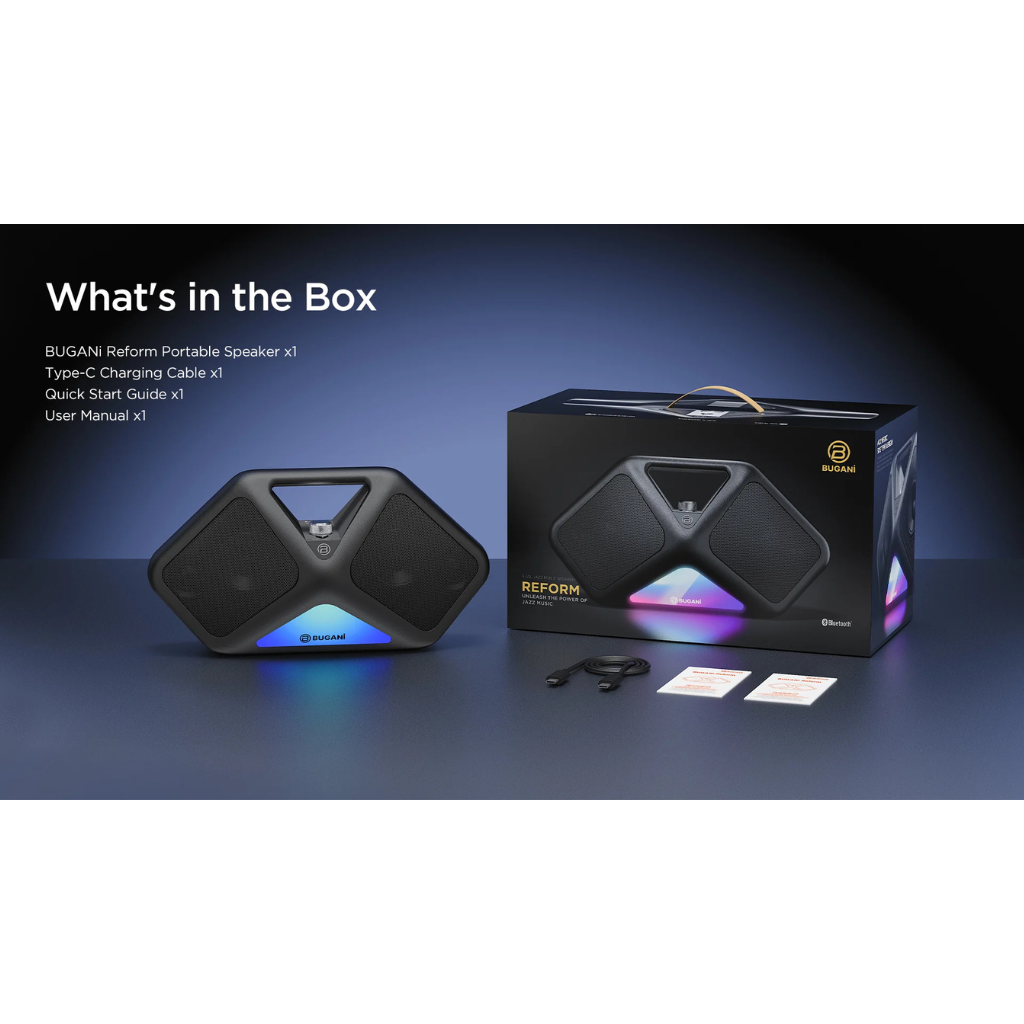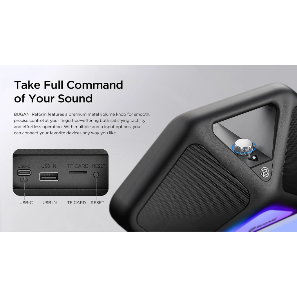 - Jaunākās tehnoloģijas jūsu ērtībai. Iebūvētais Bluetooth 5.4 nodrošina īpaši stabilu savienojumu, zemu aizturi un izcili skaidru bezvadu skaņu. “Bugani Reform” ir savietojams ar dažādām ierīcēm un ļauj bez piepūles pieslēgt tālruni, planšeti vai portatīvo datoru.