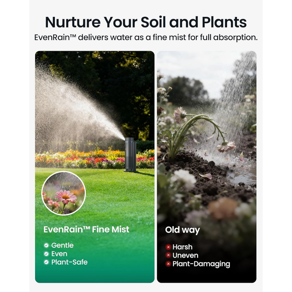 Täiustatud EvenRain™ tehnoloogia jaotab vett ühtlaselt, imiteerides loomulikku vihma. See aitab kaitsta pinnast erosiooni eest ja tagab taimede ühtlase niisutuse.