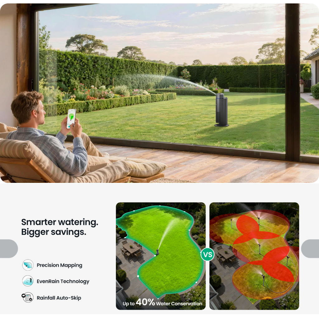 • Kuni 40% vee kokkuhoid – nutikas „Weather-Sense“ juhtimine optimeerib kastmist vastavalt ilmastikutingimustele