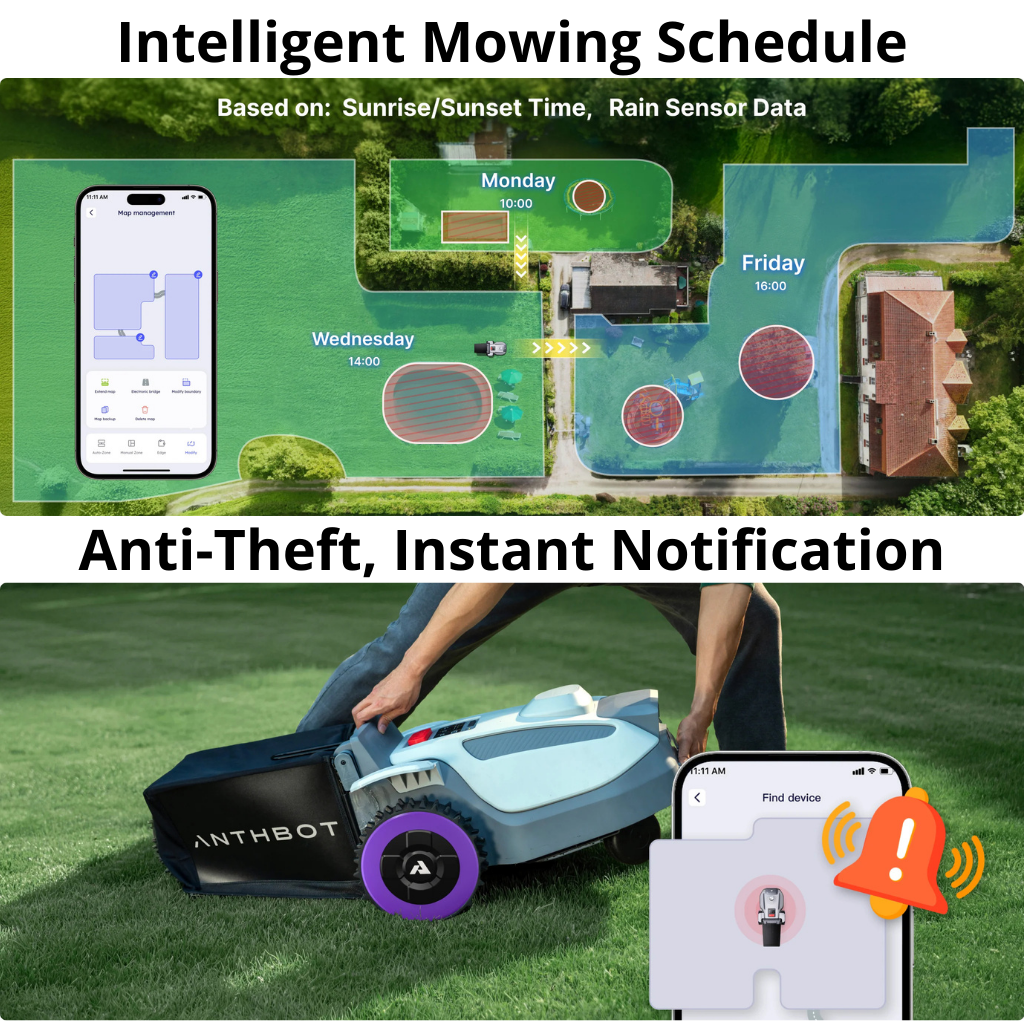 Integreeritud vihmandur ning arukad ilmastikutingimusi arvestavad graafikud võimaldavad robotil töötada optimaalselt ja usaldusväärselt.
